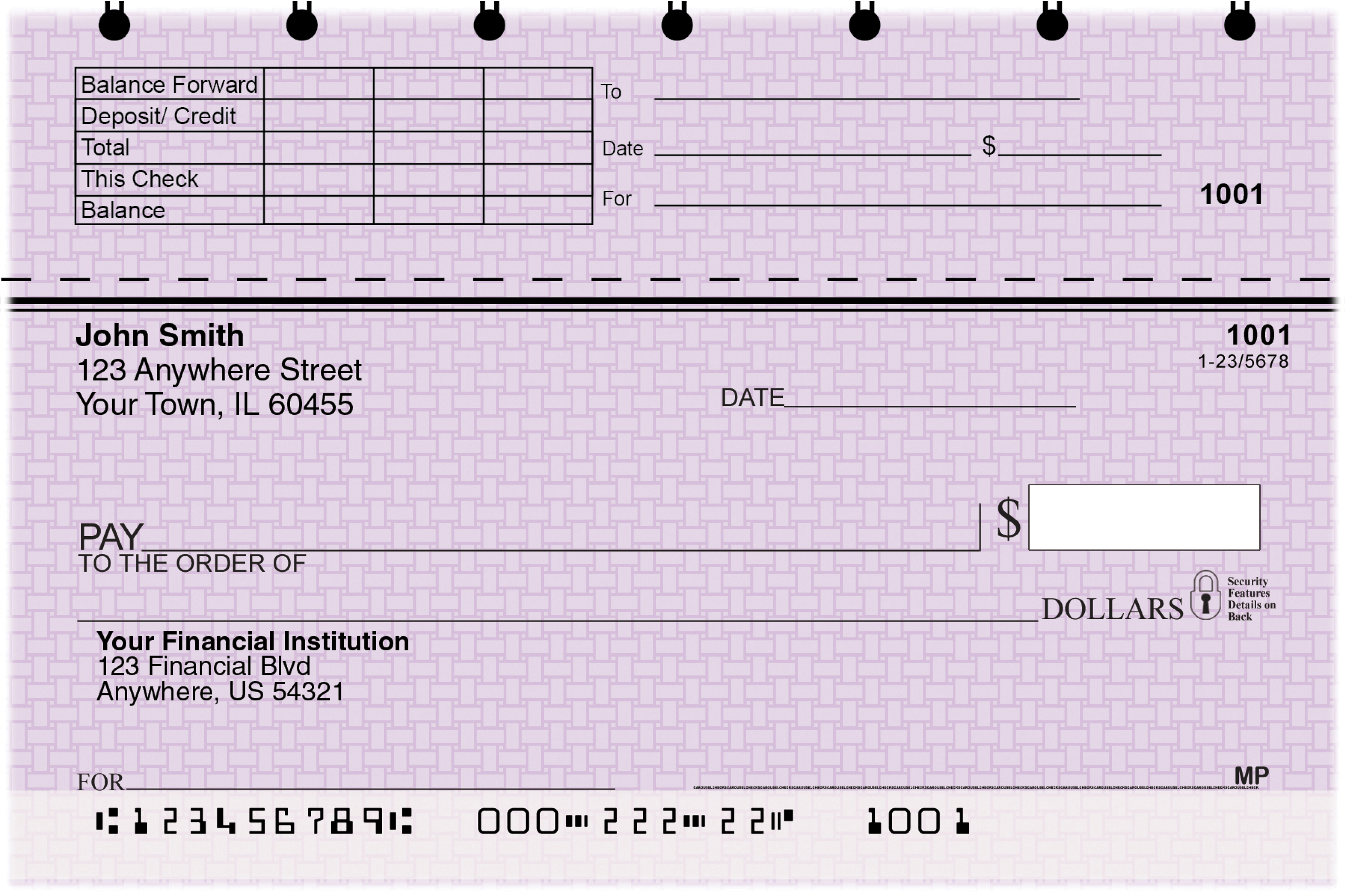 Many of our personal checks come in the popular side tear checks or the popular top stub checks formats. As always, we give you rock bottom prices for our cheap checks online. All you need is your checking account number and your routing number and you are set to buy your checks.